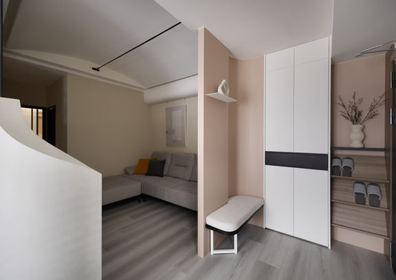 本案以「光」為核心意象,貫穿空間的材質與氛圍設定,從客廳到臥室,每一處細節皆希望為居住者創造一種如陽光灑落般的靜謐感與生活的舒適感。公區採開放式設計串聯客餐廳,使視線與動線自由流動,色彩以柔和暖調為主軸,透過低飽和度的暖色調,營造一個如午後陽光般溫暖、安定、且富有層次的生活空間。